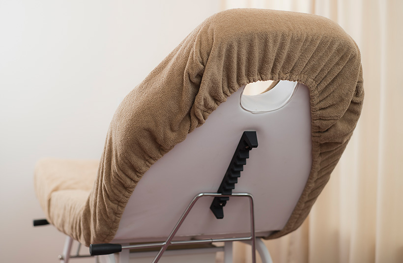 ゴムでベッドを巻き込むシーツです。ベッドにフィットするため、寝返りをしてもズレません。フェイスホール・ヘッドレスト用穴開け加工可能。
